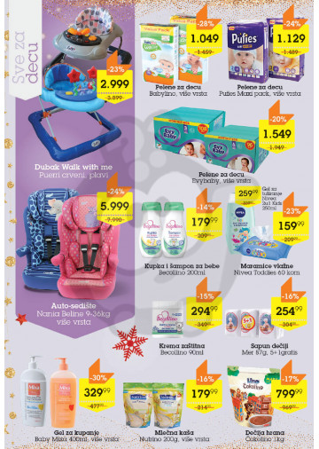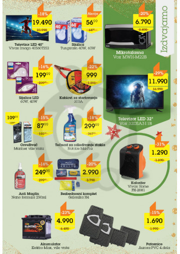 Auto oprema, Hrana i piće, Kozmetika i nega, Kućna hemija, Obuća, Sve za bebe, Sve za kuću, Tehnički uređaji, Grejanje, Mali kućni aparati