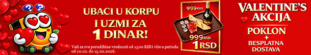 Poslužavnik koji košta 999 RSD – sada za SAMO 1 RSD! Uz kupovinu preko 1.500 RSD + Besplatna dostava do tvoje adrese Akcija traje od 10.02. do 15.02.2026.